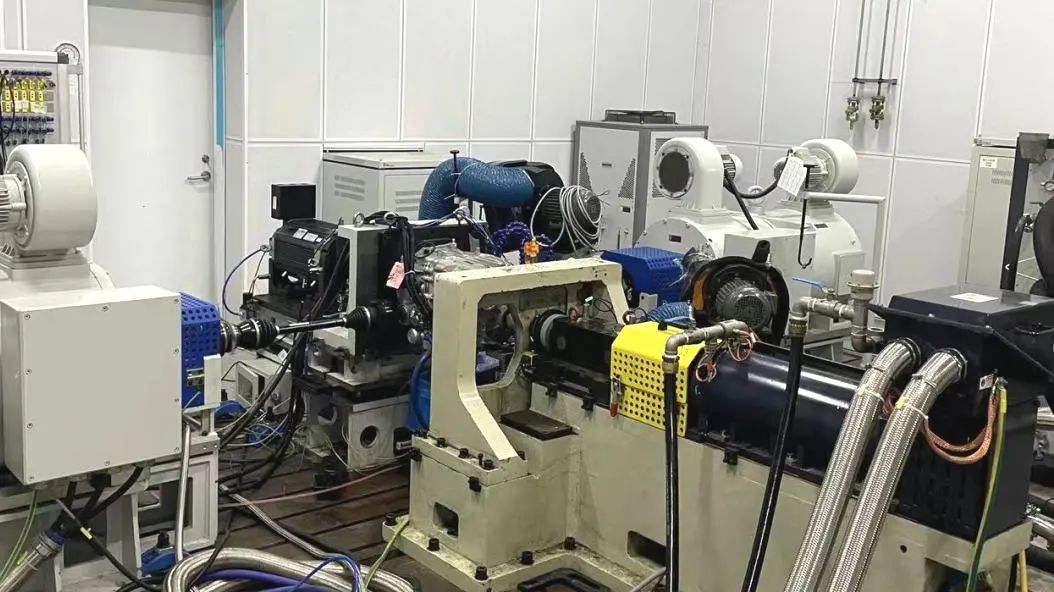 在不改變臺架布置結構的情況下,華依科技通過精密的機械設計與制造工藝,保證中速電機和高速電機的輸入軸與變速器樣機之間的同軸度,這一設計不僅減少整個臺架結構的震動,還增強了設備的可靠性與穩定性。